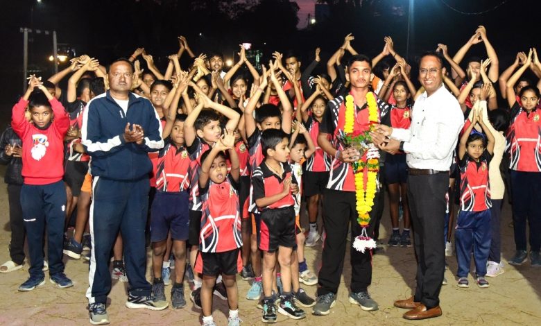 फोटो ओळ : आदेश आल्हाट यांना स्नेहबंध’चे संस्थापक अध्यक्ष डॉ. उद्धव शिंदे यांच्या हस्ते सन्मान. समवेत रिटायर्ड आर्मी प्रशिक्षक विठ्ठल काळे व भिंगार स्पोर्ट्स क्लबचे विद्यार्थी.