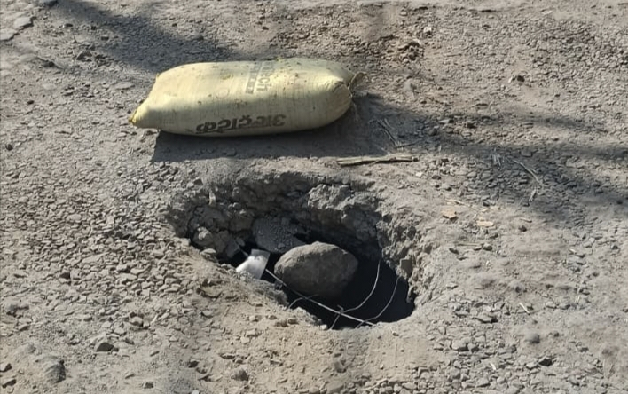 करमाळा शहरातील पंजाब वस्ताद चौकात भला मोठा खड्डा; अपघाताचा धोका वाढला